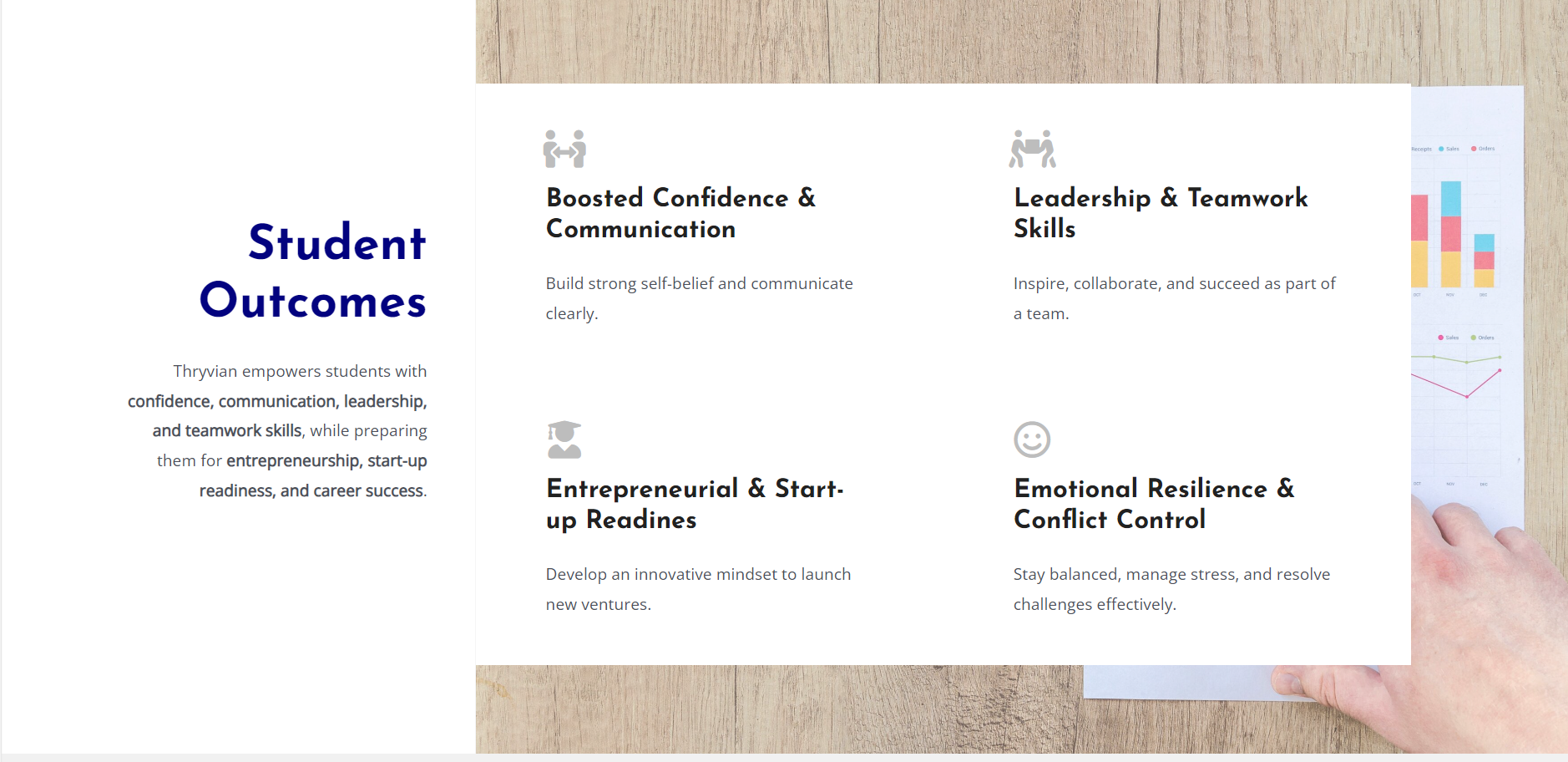 Thryvian empowers students with confidence, communication, leadership, and teamwork skills, while preparing them for entrepreneurship, start-up readiness, and career success.